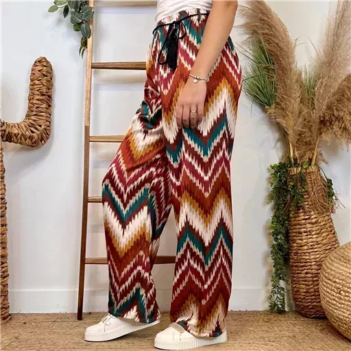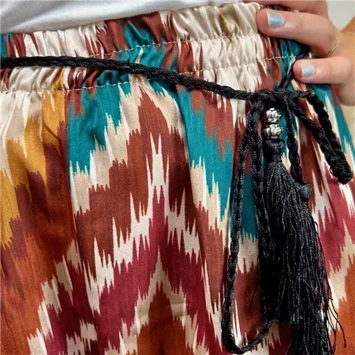 Réalisé en coton, une matière aérienne et légère, qui insuffle un esprit féminin, ce pantalon est proposé en taille unique conviendra du 36 au 42 en fonction des différentes morphologies.
