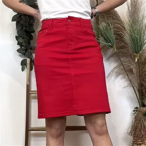 L730- Jupe jean Voggo (T36-T44) (rouge)