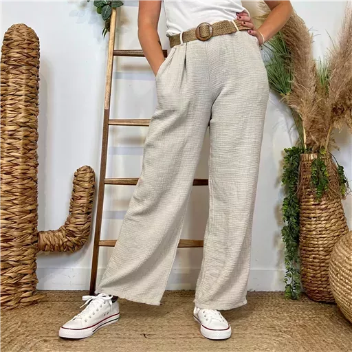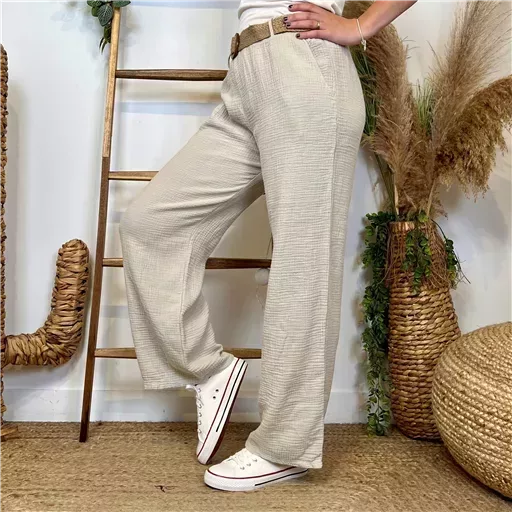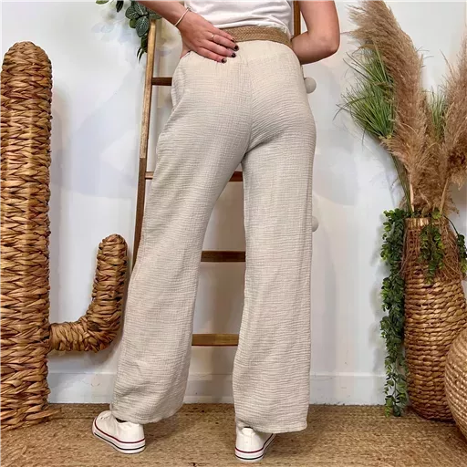 Réalisé dans une matière aérienne et légère, qui insuffle un esprit féminin, ce pantalon est proposé en taille unique conviendra du 36 au 42 en fonction des différentes morphologies.