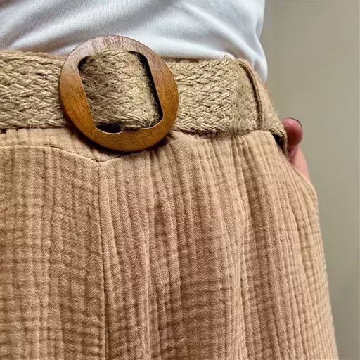 Ce pantalon long flare en gaze de coton reconnaissable par sa texture est une pièce incontournable. Ce modèle se distingue par sa simplicité, sa praticité avec ses 2 poches et sa belle ceinture. Un pantalon femme à la coupe évasée, confectionné dans une matière légère ultra confortable. Ce modèle se porte aussi bien avec un T-shirt, ou une blouse ou un pull quand les jours se rafraichissent.