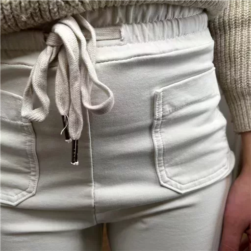 2 poches plaquées sur le devant et 2 fausses poches au niveau du fessier.