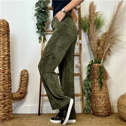 Pantalon proposé en taille unique il conviendra du 36 au 42, ce pantalon flare en velours a une coupe évasée ! Ce modèle de fabrication italienne a un zip et un bouton. Le flare est idéal pour allonger les jambes et créer une silhouette élancée. Sa coupe résolument vintage est droite et évasée du haut de la cuisse et sur le reste de la jambe (beaucoup plus qu’un jean bootcut). Ils s’associeront à merveille avec nos sélections de vêtement Prêt à Porter Féminin, Petites & Grandes Tailles.