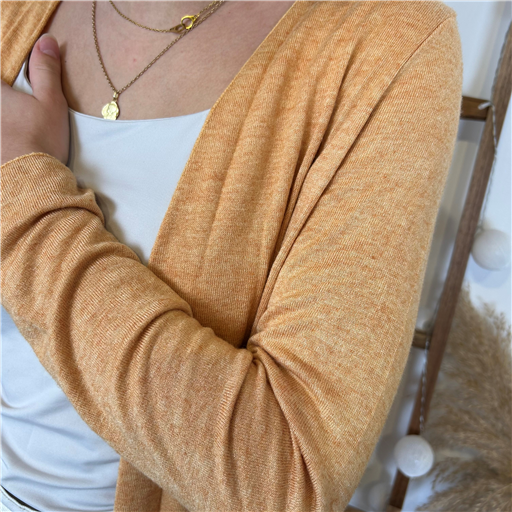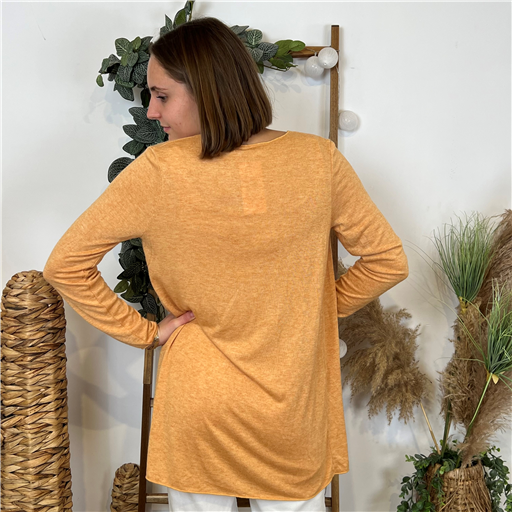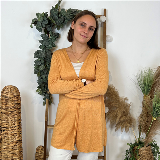 Modèle contenant de la laine. Coupe droite, légèrement Oversize, manches et absence de col.
