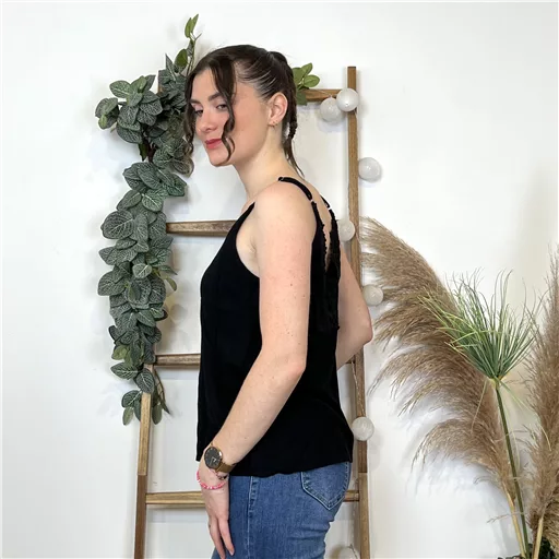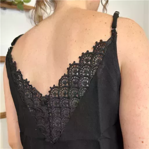Ce top est une pièce légère et agréable à porter qui conviendra parfaitement à la saison estivale. Le dos avec sa broderie en V est originale la finition ajoute une touche de raffinement. Des bretelles fines ajustables permettent de l’adapter à toutes les morphologies. Choisir sa taille habituelle. Choisir sa taille habituelle. T S/M= 36/38, T M/L = 38/40.