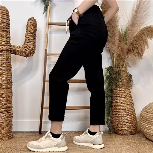 Coqueluche des années 70, le jean mom reste un indispensable du dressing. Ici présenté en version « taille élastiquée », il est parfait pour les femmes ayant une taille peu marquée, des hanches et des épaules de largeurs égales et des silhouettes fines et élancées (morphologie en H). Il convient aussi très bien aux femmes qui ont des jambes fines ou plus étroites que le haut de leur corps (morphologie en V). Pour plus de fantaisies regardez du coté des modèles Melly and Co. Ils s’associeront à merveille avec nos sélections de vêtements Féminin, Petites & Grandes Tailles. Et nos nombreux accessoires (chaussures, sacs, foulards…).