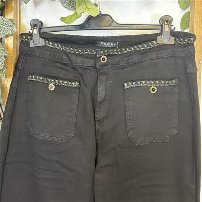 Jean Wide Leg Long – brut avec des boutons – Coutures contrastées. Jean wide leg long doté de poches plaquées pratiques et de coutures élégantes au niveau de la cheville. Sa coupe ample offre confort et liberté de mouvement, tandis que les détails de finition apportent une touche raffinée.