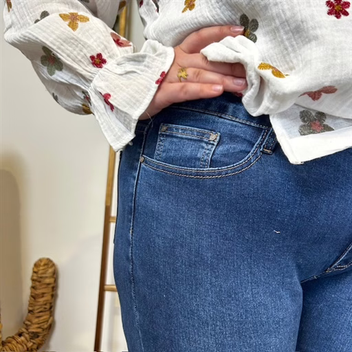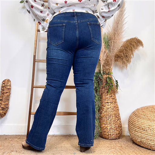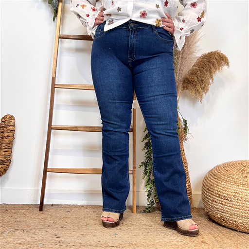 Jean bootcut Voggo taille haute est proposé du 42 au 50. Composition en coton, polyester et élastanne font de lui un modèle à porter sans modération. C’est le succès assuré ! Le bootcut équilibre la silhouette,entre le haut et le bas de votre corps. Il a l’avantage d’allonger la silhouette et d’affiner les cuisses. 5 poches, bas éffiloché lui offrant un petit coté seventies. Passant pour glisser une ceinture, bouton et fermeture.