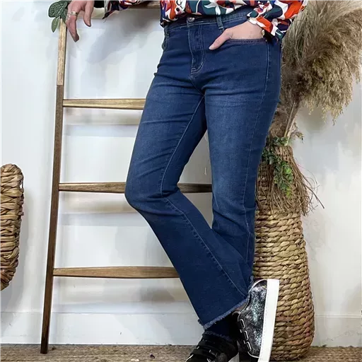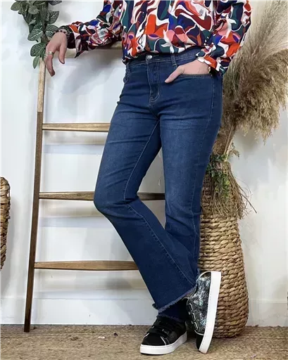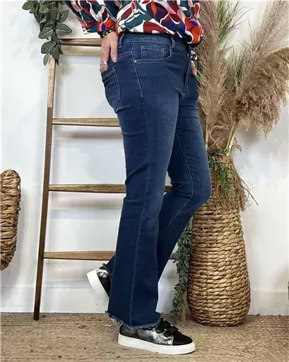 N010- Jean Bootcut éffiloché (T36-T44) (denim foncé)