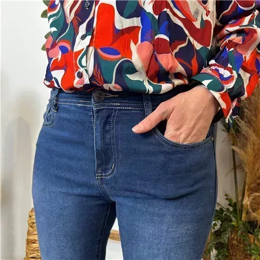 Jean slim bootcut Voggo taille haute est proposé du 36 au 44. Composition en coton, polyester et élastanne font de lui un modèle à porter sans modération. C’est le succès assuré ! Le bootcut équilibre la silhouette,entre le haut et le bas de votre corps. Il a l’avantage d’allonger la silhouette et d’affiner les cuisses. 5 poches, bas éffiloché lui offrant un petit coté seventies. Passant pour glisser une ceinture, bouton et fermeture.