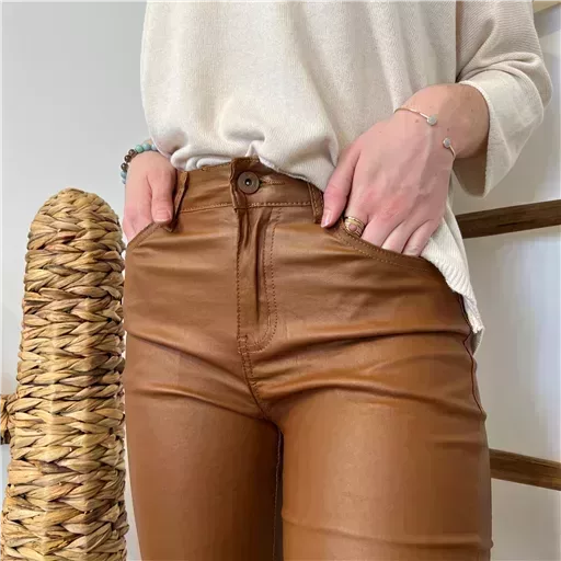 M969- Jean coupe slim Enduit (T36-T44) (camel)