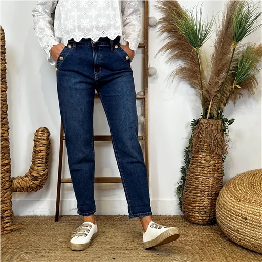 Mom Boutons poches – Coqueluche des années 70, le jean mom reste un indispensable du dressing. Il est parfait pour les femmes ayant une taille peu marquée, des hanches et des épaules de largeurs égales et des silhouettes fines et élancées (morphologie en H). Il convient aussi très bien aux femmes qui ont des jambes fines ou plus étroites que le haut de leur corps (morphologie en V). Pour plus de fantaisies regardez du coté des modèles Melly and Co. Ils s’associeront à merveille avec nos sélections de vêtements Féminin, Petites & Grandes Tailles. Et nos nombreux accessoires (chaussures, sacs, foulards…).