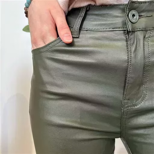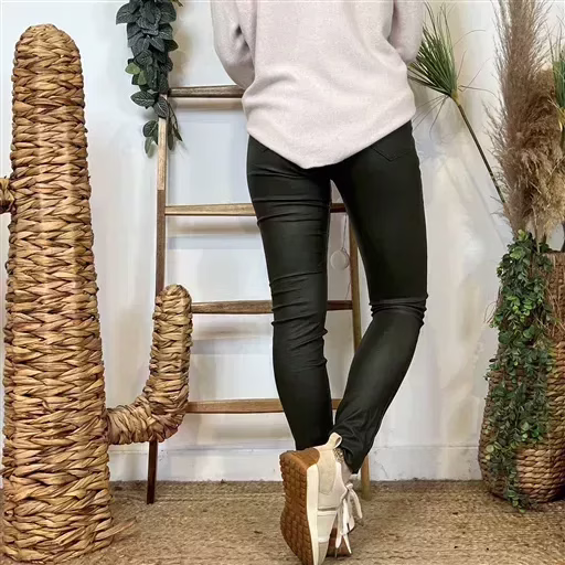 M969- Jean slim Enduit (T36-T44) (kaki)