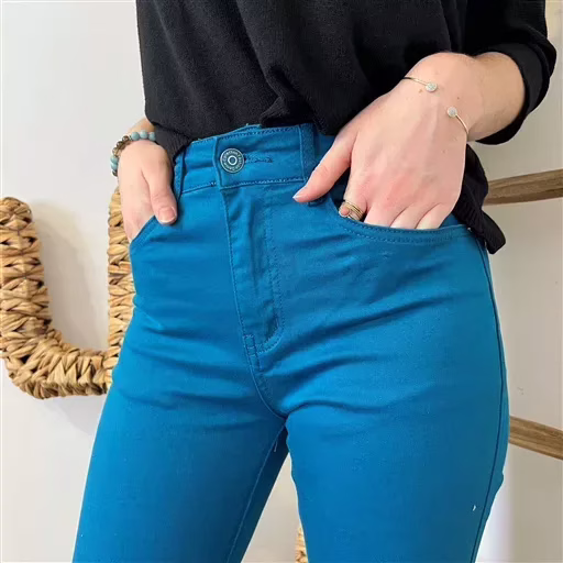O539- Jean Slim Voggo (T36-T44) (bleu canard)