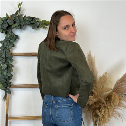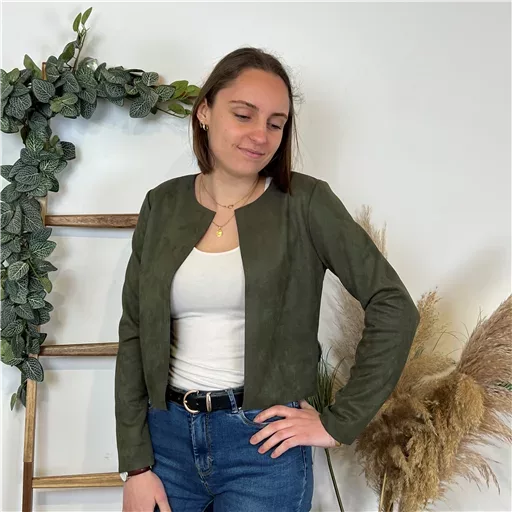 Veste courte unie sans col, sans fermeture. Dotée de manches longues SANS épaulettes. Idéale en toute saison, cette dernière finira vos tenues avec gout. A poser sur une robe ou sur une liquette longue afin de jouer avec les longueurs.