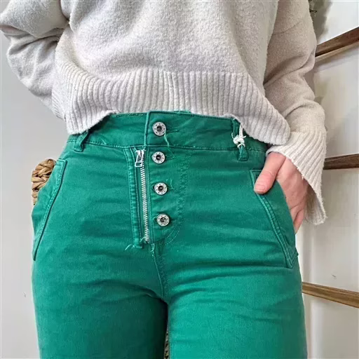 Le modèle phare de la marque avec le « délavage été ». Taille semi haute, 4 boutons et zip. jean SLIM 5 poches. Les 2 poches arrières sont zippées. Melly and Co est une jeune marque absolument douée pour la coupe et la conception de ses pantalons. A associer avec un pull et une blouse afin de finir votre look.