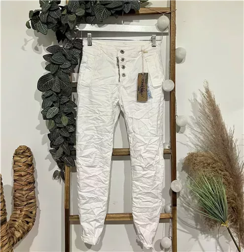 Tous ces jeans Melly and Co , sont proposés volontairement froissés délavés et shootés ainsi. En acquérir un c’est le risque de Vous ne plus pouvoir vous en passer, et toutes les couleurs proposées vous séduiront au fil des saisons.!. Si vous n’aimez pas ce concept, ce froissé non permanent disparaîtra avec un simple coup de fer.