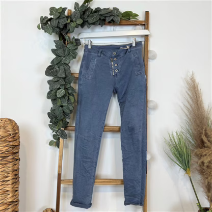 Tous ces jeans Melly and Co , sont proposés volontairement froissés délavés et shootés ainsi. En acquérir un c’est le risque de Vous ne plus pouvoir vous en passer, et toutes les couleurs proposées vous séduiront au fil des saisons.!. Si vous n’aimez pas ce concept, ce froissé non permanent disparaîtra avec un simple coup de fer.