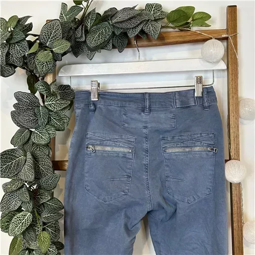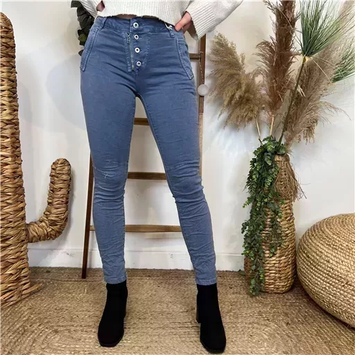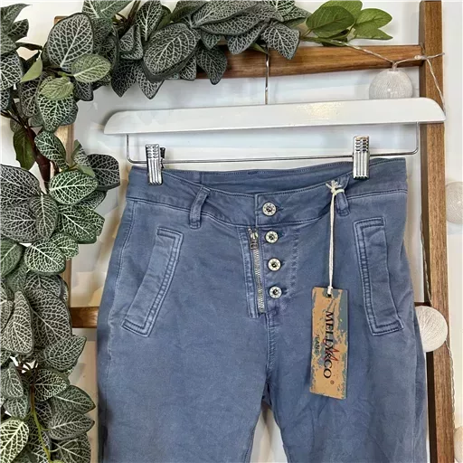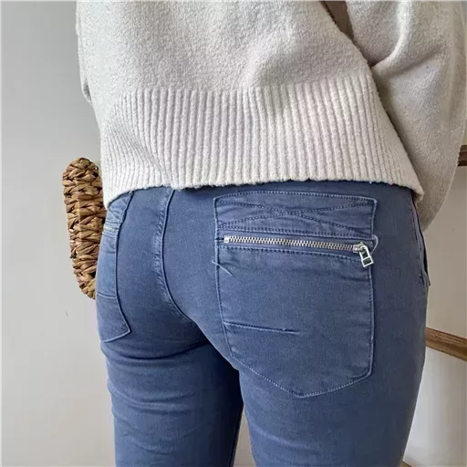 Le modèle phare de la marque avec le « délavage été ». Taille semi haute, 4 boutons et zip. jean SLIM 5 poches. Les 2 poches arrières sont zippées. Melly and Co est une jeune marque absolument douée pour la coupe et la conception de ses pantalons. A associer avec un pull et une blouse afin de finir votre look.