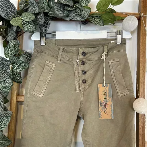 Le modèle phare de la marque avec le « délavage été ». Taille semi haute, 4 boutons et zip. jean SLIM 5 poches. Les 2 poches arrières sont zippées. Melly and Co est une jeune marque absolument douée pour la coupe et la conception de ses pantalons. A associer avec un pull et une blouse afin de finir votre look.