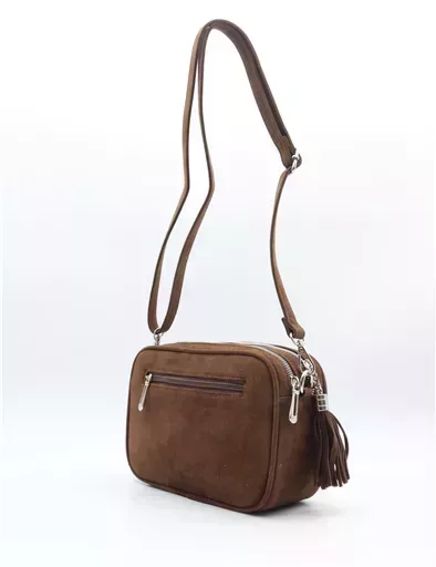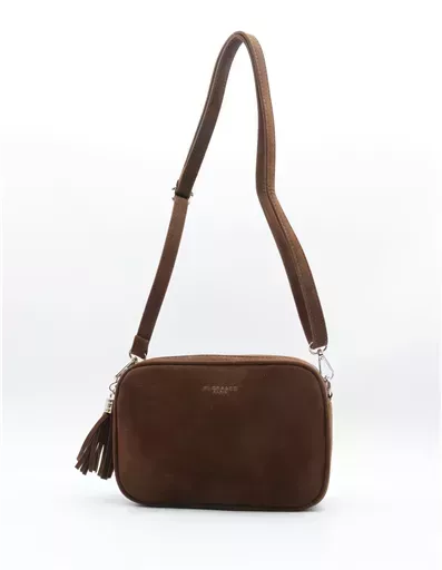 P387- Sac Zippé Pompon aspect Daim Flora & Co (marron)