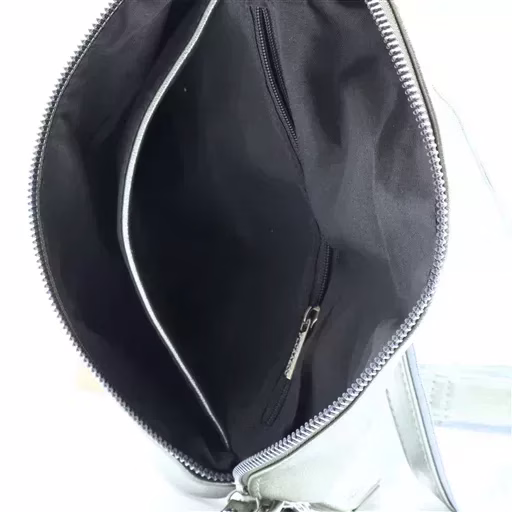 A l’intérieur un grand espace avec une pochette en tissus séparateur offrant 2 espaces et une poche zippée.