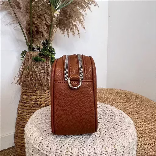 Modèle souple, aspect cuir. Sac bandoulière, fermeture glissière pour plus de sécurité