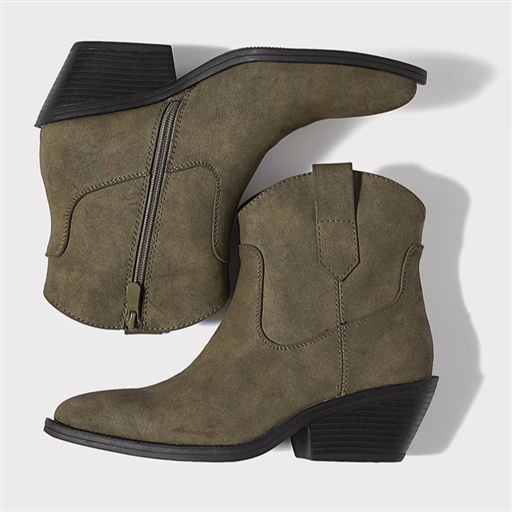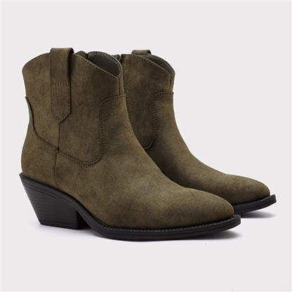 Optez un look western chic avec ces bottines basses esprit santiag. Leur matière aspect daim apporte une touche douce et élégante, idéale pour la saison, tandis que les surpiqûres ton sur ton soulignent joliment l’inspiration cowboy. La coupe cheville affine la jambe et se glisse facilement sous un jean ou avec une robe fluide. Montées sur un talon biseauté confortable, elles offrent la hauteur parfaite pour élancer la silhouette tout en restant stables au quotidien. Faciles à enfiler grâce à la fermeture zippée latérale et à la petite languette arrière, ces bottines deviennent vite un indispensable pour un style casual tendance.