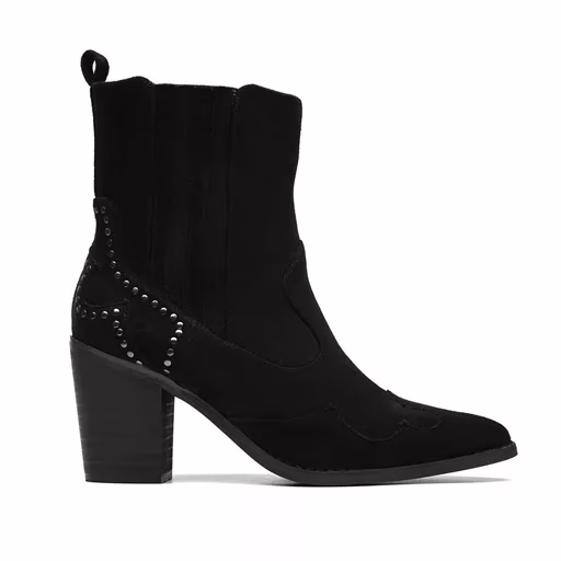 Des bottines santiags signées Moow aspect daim, qui deviendront des essentiels de votre dressing. Une création intemporelle qui conjugue matière de qualité et finitions soignées. Détails produit: Hauteur de chaussure : 22 cm en taille 37, Talon biseauté, Hauteur de talon : 8 cm, Fermeture : A élastique, Bout pointu. De petits rivets de finition au niveau du talon.