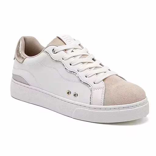 Avec cette basket bicolore, la marque Moow se positionne en partenaire urbaine de toute citadine. A la fois confortable et tendance, ces chaussures recèlent une doublure en textile tandis que sa semelle extérieure est en caoutchouc. Une fusion réussie de modernité et de caractère. Bout de chaussure rond, talon plat, fermeture à laçage. Imitation cuir et textile. Facile à associer avec toutes nos collections de vêtements en Prêt à porter Petites et Grandes Tailles et nos nombreux accessoires.