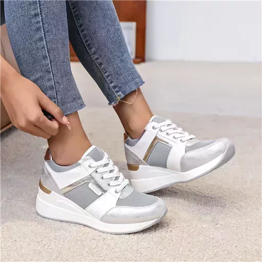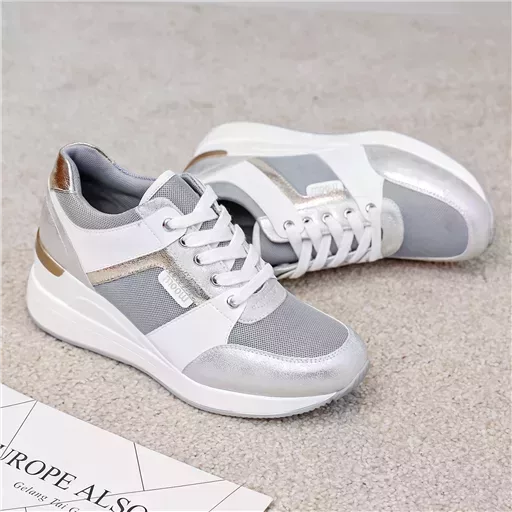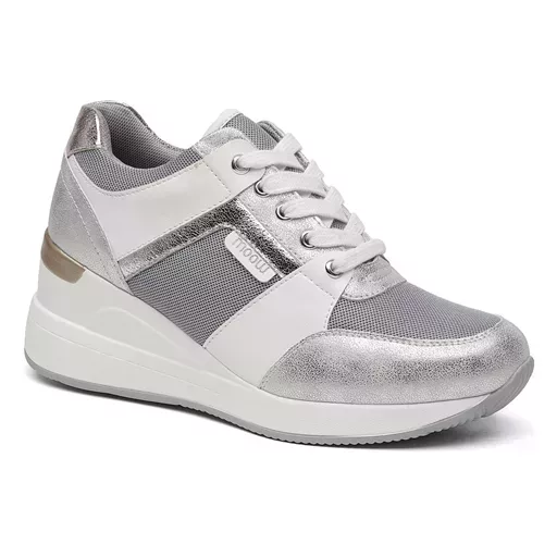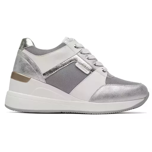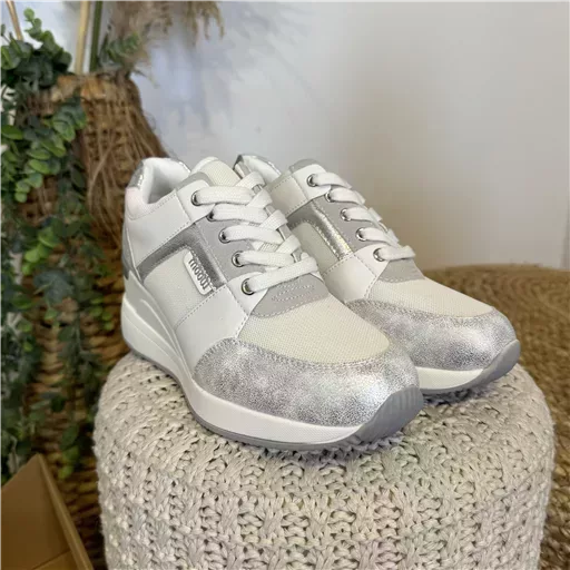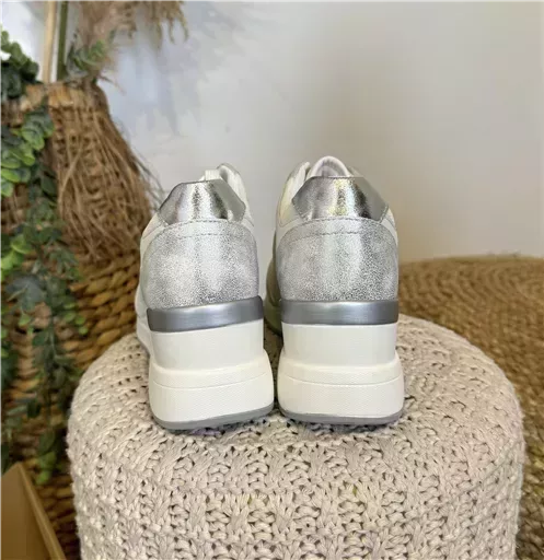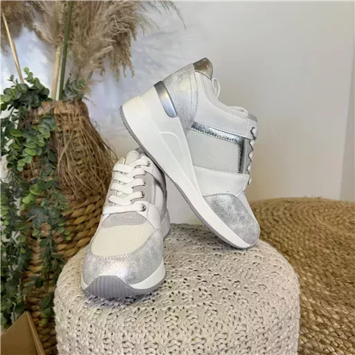 Du doré ou de l’argenté au niveau de la tige. Fantaisie en contour des lacets. griffe de la marque. 6 trous
