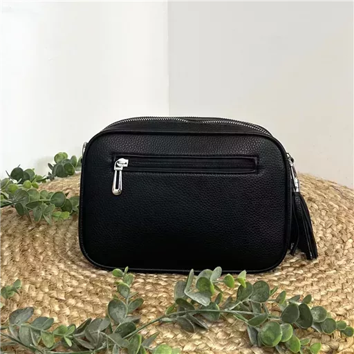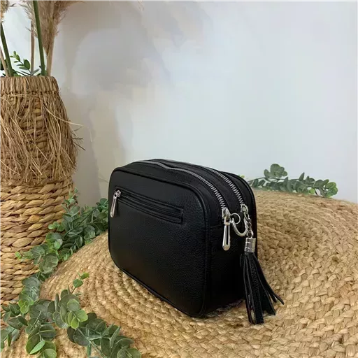 Modèle souple, aspect cuir. Sac bandoulière, fermeture glissière pour plus de sécurité