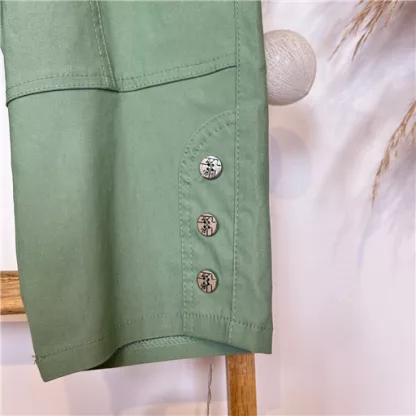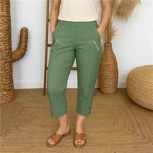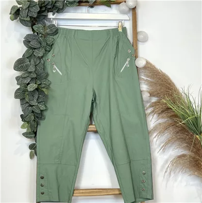 ATTENTION après mesures, nous avons déduit 2 tailles par rapport à l’étiquette cousue intérieure : Ce modèle classique est un indispensable dans les Penderies Confort : Pantacourt taille haute avec taille élastiquée et des poches sur les côtés. Belle profondeur, en stretch avec des zips fantaisies au niveau des poches 2 boutons. En bas 3 boutons apporteront de la fantaisie à ce modèle.