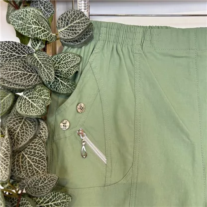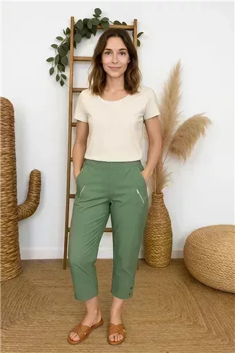 T581- Pantacourt stretch uni JST (T38-T52) (vert céladon)