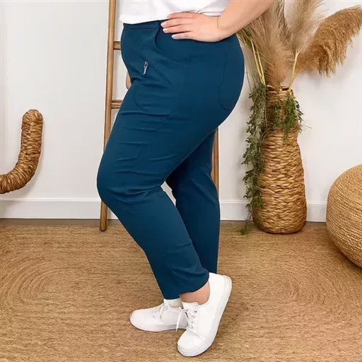 A la fois classique de part sa coupe et fantaisie avec ses finitions au niveau des poches, ce pantalon taille haute est proposé avec sa taille élastique et ses poches sur les côtés. Un modèle indispensable dans les penderies Confort.