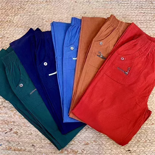 A la fois classique de part sa coupe et fantaisie avec ses finitions au niveau des poches, ce pantalon taille haute est proposé avec sa taille élastique et ses poches sur les côtés. Un modèle indispensable dans les penderies Confort.