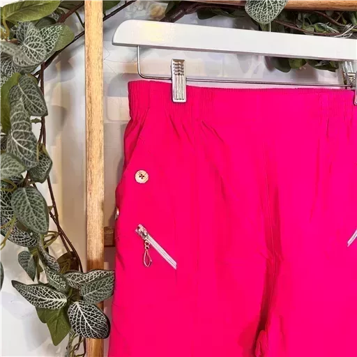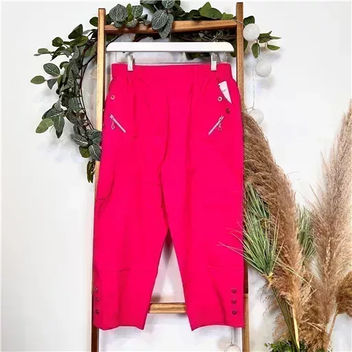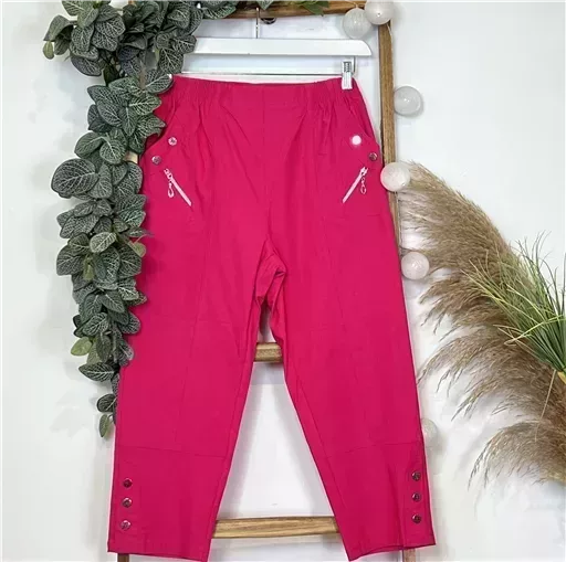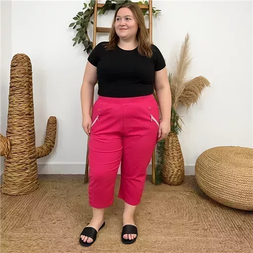 ATTENTION après mesures, nous avons déduit 2 tailles par rapport à l’étiquette cousue intérieure : Ce modèle classique est un indispensable dans les Penderies Confort : Pantacourt taille haute avec taille élastiquée et des poches sur les côtés. Belle profondeur, en stretch avec des zips fantaisies au niveau des poches 2 boutons. En bas 3 boutons apporteront de la fantaisie à ce modèle.