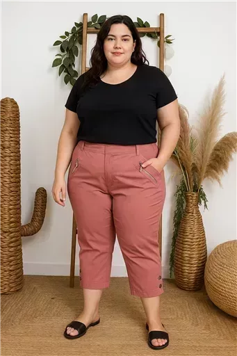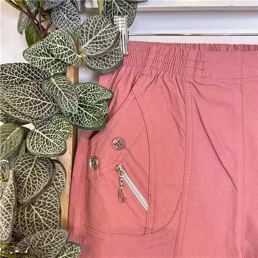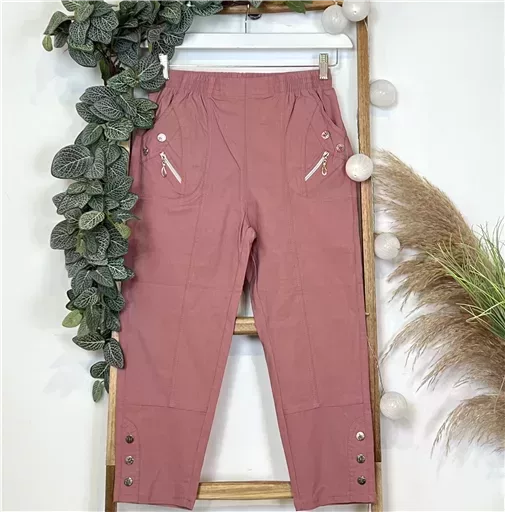 T581- Pantacourt stretch uni JST (T38-T52) (vieux rose)