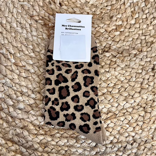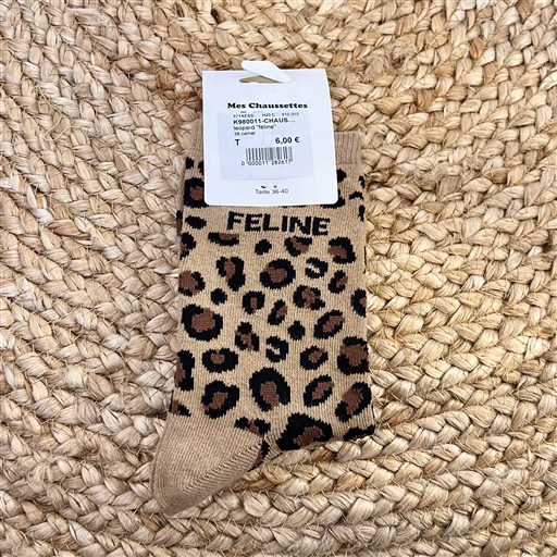 « Féline sur fond léopard ». Un joli PATCH pour ces chaussettes à paillettes à message proposées en tailles unique convenant de la taille taille 35 au 41. Fantaisies et stylées de la marque. Pour faire un cadeau, ou pour vous même… elles vous accompagneront en toutes circonstance. Accessoire facile à associer avec nos collections de vêtements en Prêt à Porter Féminin Petites et Grandes Tailles.