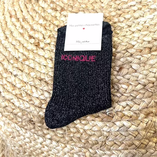 Chaussettes paillettes colorées mot fantaisie. plusieurs modèles au choix dans notre catégorie « Accessoires« :