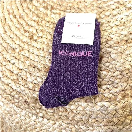 Chaussettes paillettes colorées mot fantaisie. plusieurs modèles au choix dans notre catégorie « Accessoires« :