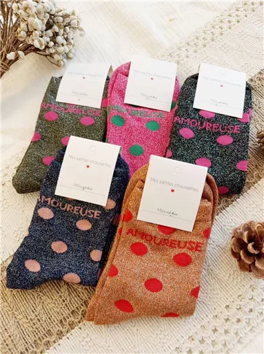Chaussettes paillettes colorées mot fantaisie. plusieurs modèles au choix dans notre catégorie « Accessoires« :