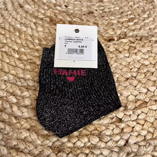 Chaussettes paillettes colorées mot fantaisie. plusieurs modèles au choix dans notre catégorie « Accessoires« :