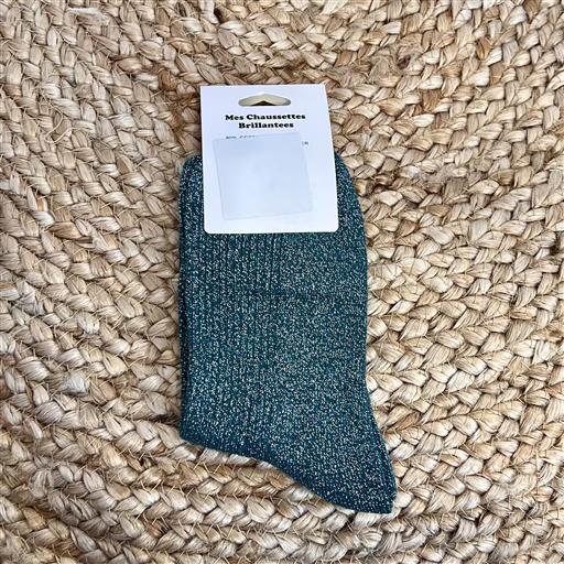 V329- Chaussettes paillettes « Amour » (vert sapin)