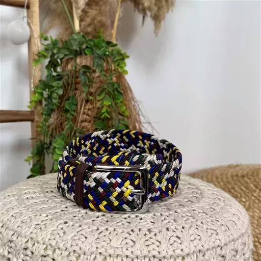 Ceinture élastique tressée avec l’embout en PU. 3.3 cm de large. 105-110 cm de longueur. Extensible jusqu’à 120-125 cm