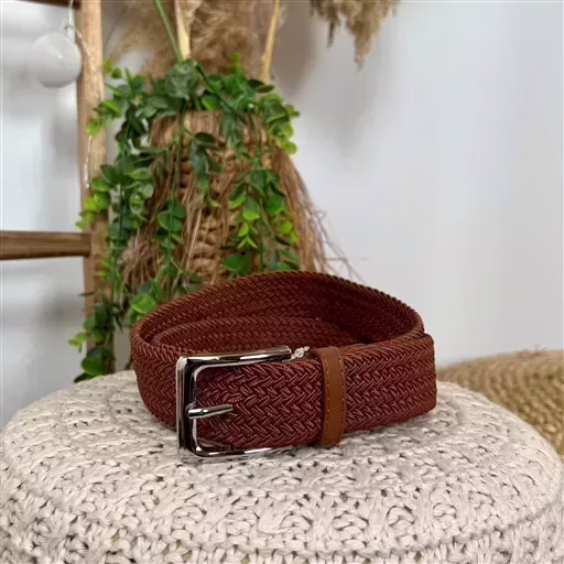 Ceinture élastique tressée avec l’embout en PU. 3.3 cm de large. 105-110 cm de longueur. Extensible jusqu’à 120-125 cm