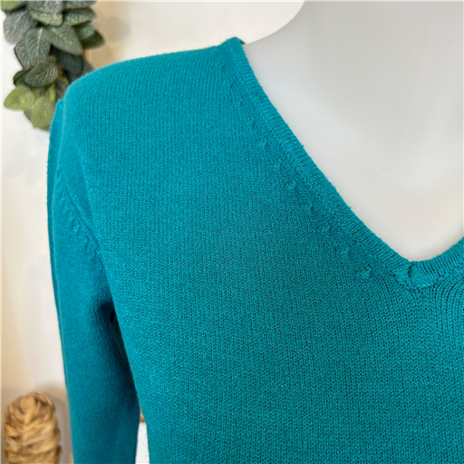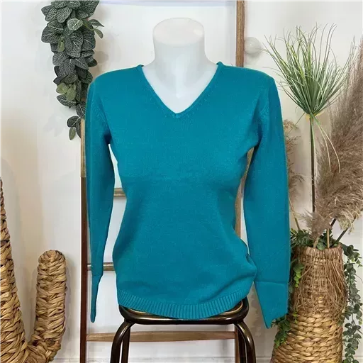 Pull uni Tricotonic col v. Bord cotelé au niveau des poignets et du col.