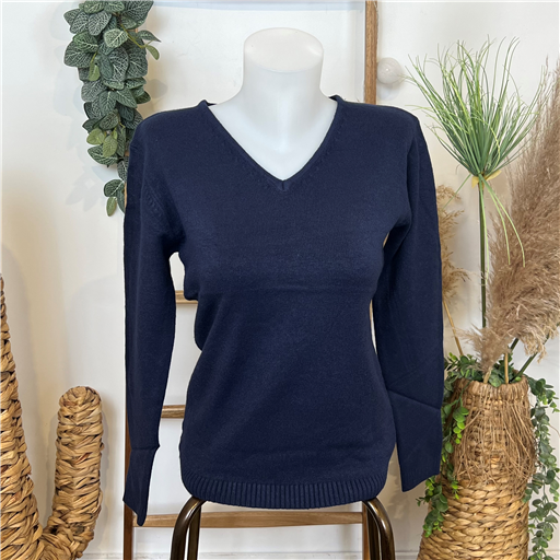 Pull uni Tricotonic col v. Bord cotelé au niveau des poignets et du col.