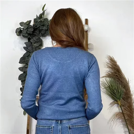 Y251- Pull Laine Cachemire « Tricotonic » (T36-T40) (bleu indigo)