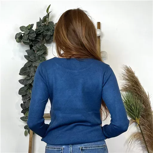 Pull uni Tricotonic col v. Bord cotelé au niveau des poignets et du col.