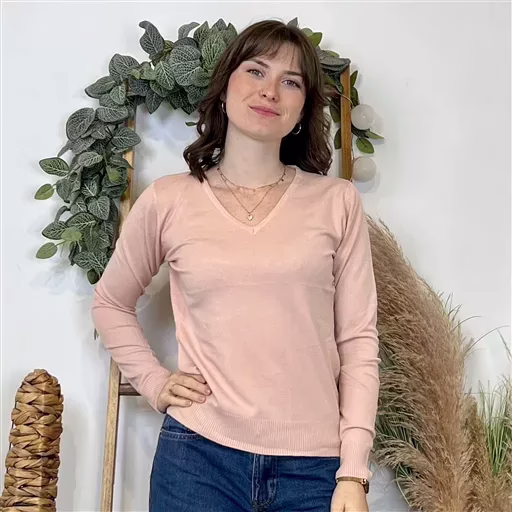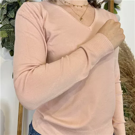 Y372- Pull FIN sans laine «Voggo» (T36-T48) (rose poudré)